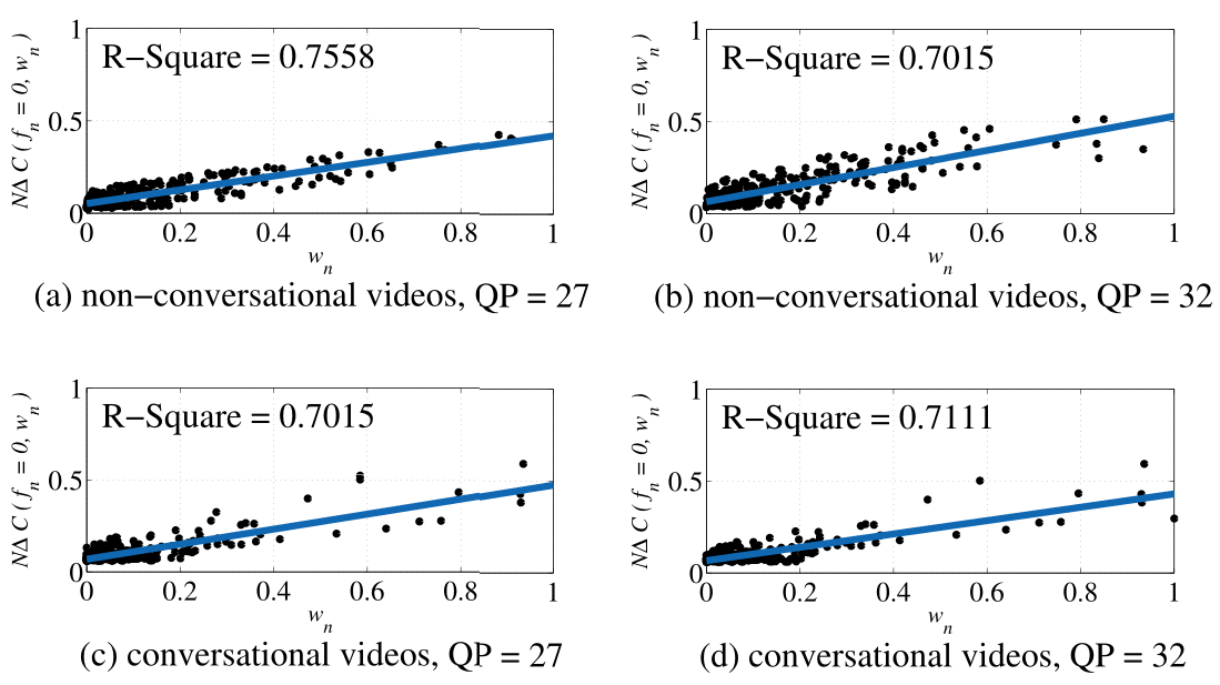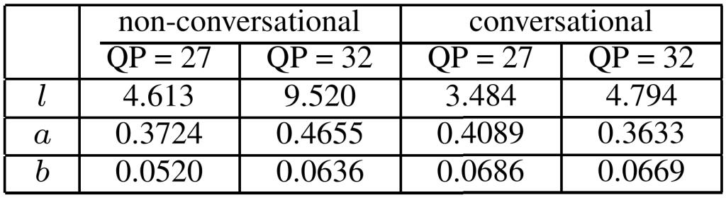 Then seven randomly selected training sequences from JCT-VC database are used for modelling the fromer functions. The modelling results are: